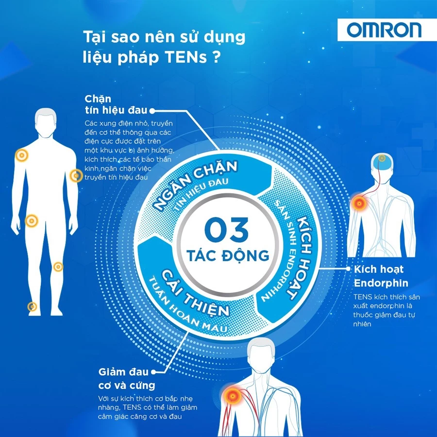 - Công nghệ TENS & Xung điện trị liệu (1-1200Hz): Giúp chặn cơn đau, kích thích sản sinh endorphin (thuốc giảm đau tự nhiên), cải thiện tuần hoàn máu và giảm tê cứng cơ.