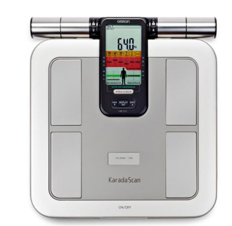 Tỷ lệ mỡ cơ thể là lượng mỡ cơ thể so với trọng lượng của cơ thể và được chỉ ra dưới dạng %. Máy đo lượng mỡ cơ thể HBF-375 sử dụng phương pháp BI (trở kháng điện sinh học) để đo tỷ lệ mỡ cơ thể của bạn bằng cách sử dụng công thức đơn giản sau: Tỷ lệ mỡ cơ thể (%) = {Lượng mỡ cơ thể (kg) / Trọng lượng cơ thể (kg)} x 100