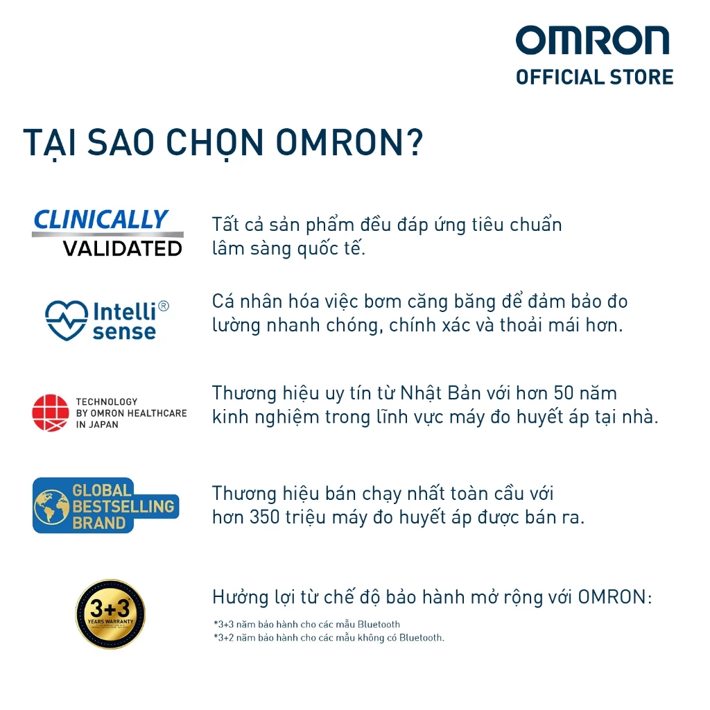 Bluetooth ® Kết nối: Cho phép theo dõi kết quả đo của bạn thông qua ứng dụng OMRON connect bằng cách đồng bộ không dây với điện thoại thông minh.
