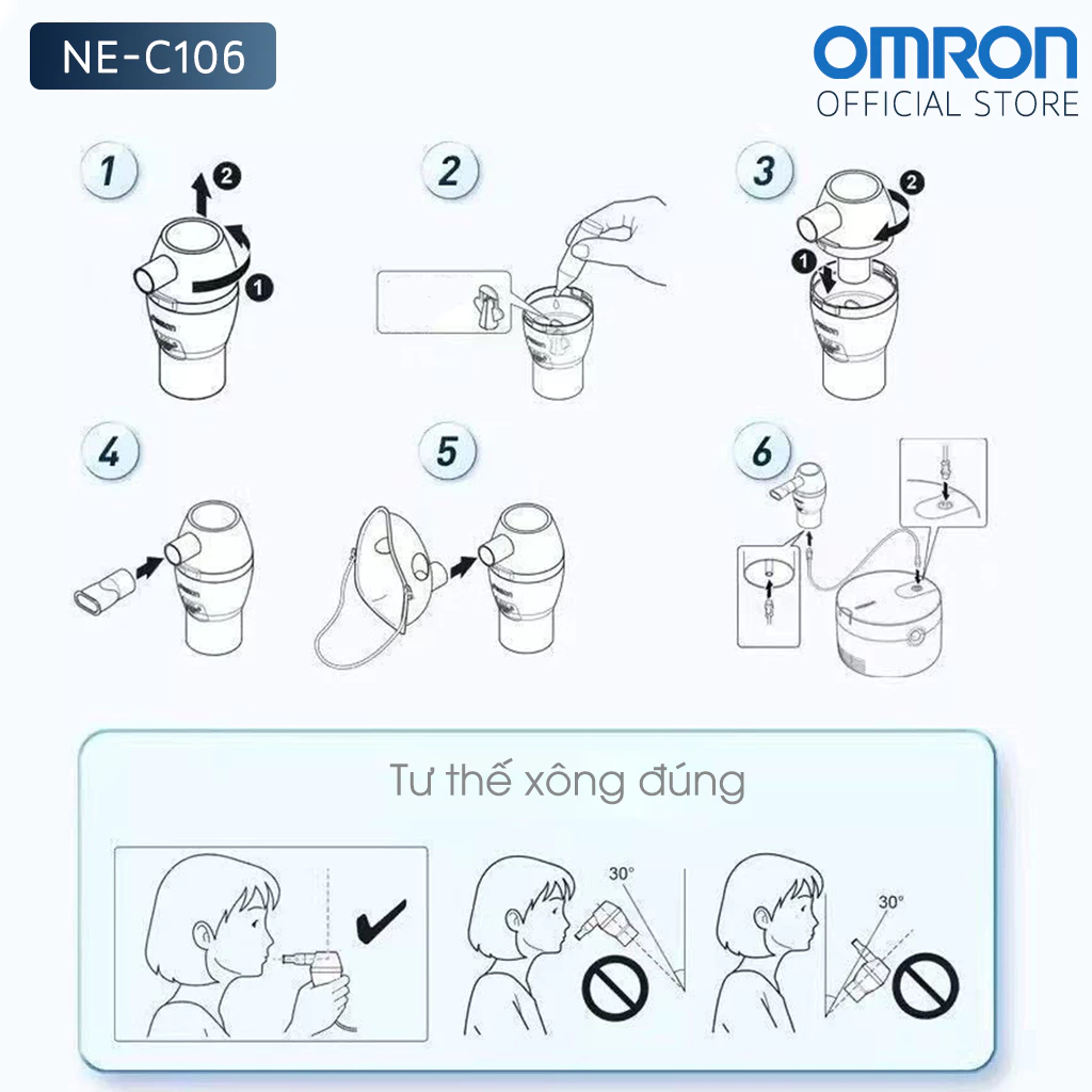 - Vệ sinh phụ kiện: Tháo rời cốc thuốc, mặt nạ/ống ngậm và rửa sạch bằng nước ấm hoặc dung dịch sát khuẩn nhẹ. Để khô tự nhiên ở nơi thoáng mát.