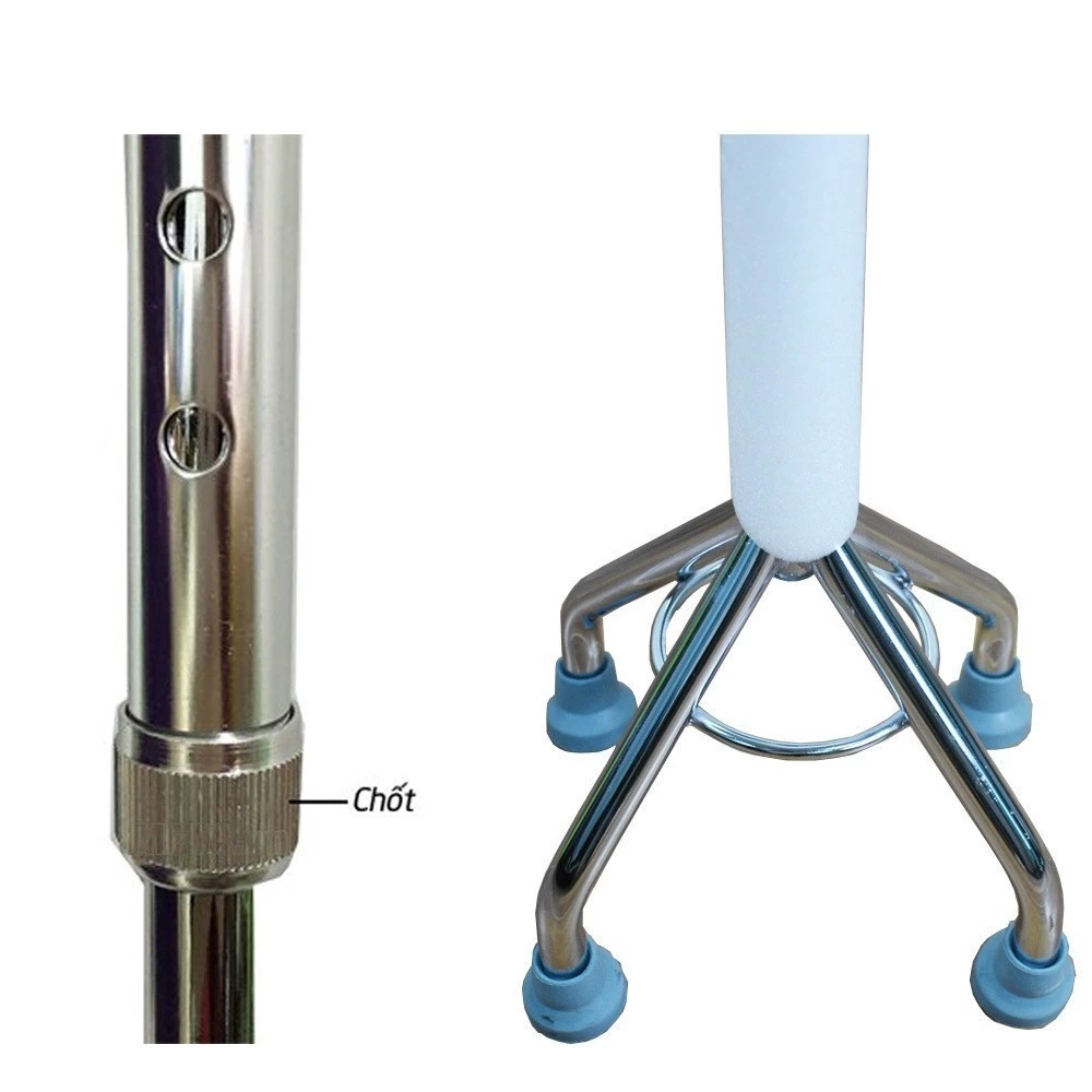 Ai nên sử dụng: là thiết bị hỗ trợ đắc lực cho người già, người chân yếu hoặc bệnh nhân đang tập đi sau tai biến. Với khung thép mạ Chrome chắc chắn, gậy có khả năng chịu lực tốt và chống gỉ sét hiệu quả. Thiết kế 4 chân đế rộng kèm nút cao su chống trượt giúp gậy tự đứng vững, tạo điểm tựa an toàn và thăng bằng tuyệt đối cho người dùng. Đặc biệt, bạn có thể dễ dàng điều chỉnh chiều cao từ 72cm đến 95cm để phù hợp với vóc dáng riêng của mỗi người.