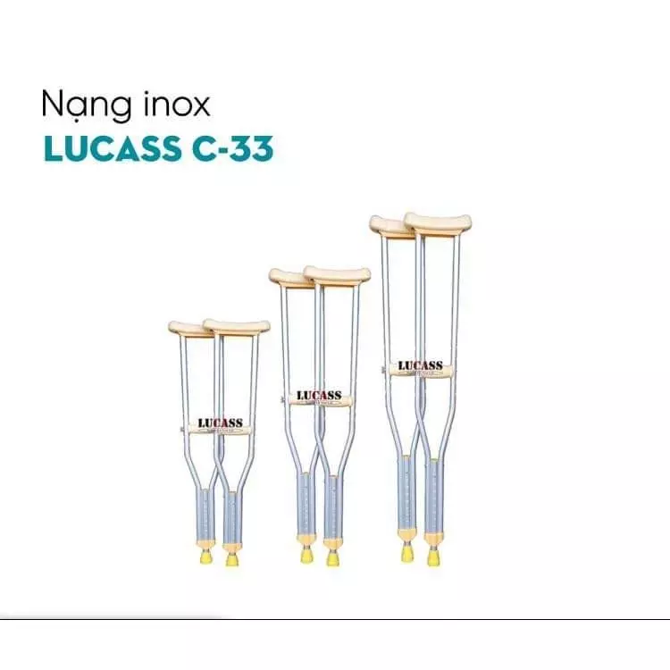 - Điều chỉnh: Sử dụng các nấc trên nạng Lucass C-33 để tăng/giảm chiều cao phù hợp cho người cao từ 1.5m – 1.9m.
