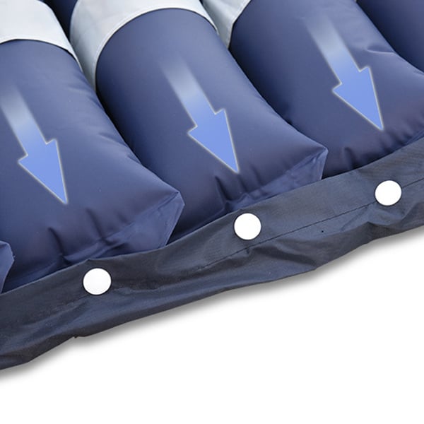- Công nghệ bơm luân phiên: Đệm hoạt động theo nguyên lý đảo hơi liên tục giữa các múi khí, tạo cảm giác như massage, giúp giảm tối đa lực tì đè lên vùng lưng, xương cụt, hạn chế tình trạng bí hơi và loét da.