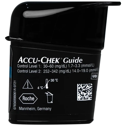 Que thử đường huyết Accu-Chek Guide là sự lựa chọn hoàn hảo cho những người có nhu cầu theo dõi đường huyết tại nhà. Hộp đựng que thử được thiết kế thông minh để giữ cho que thử không rơi ngay cả khi dốc ngược, vùng lấy máu rộng giúp bệnh nhân lấy máu dễ dàng. Sản phẩm nhỏ gọn để mang theo khi di chuyển, thuận lợi cho việc xét nghiệm bất cứ lúc nào
