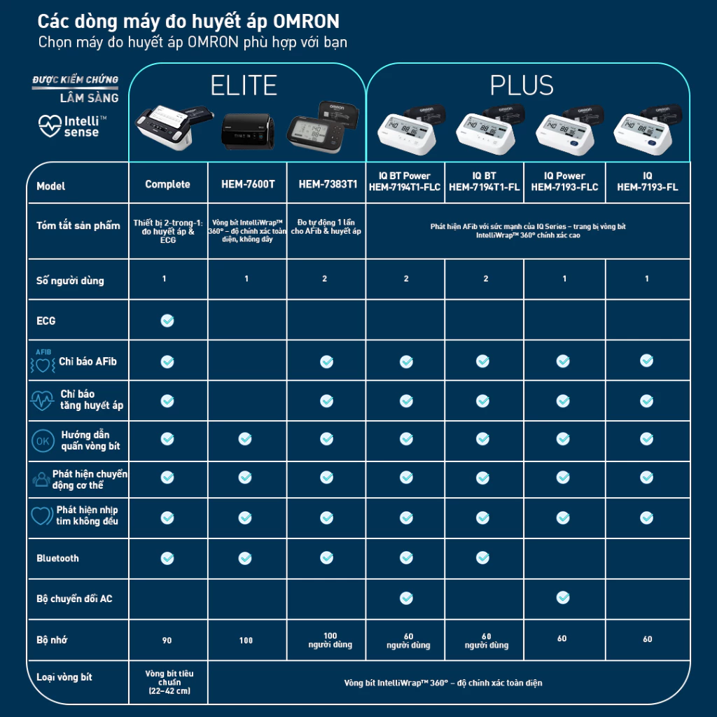 Bao gồm vòng bít: Vòng bít IntelliWrapTM HEM-FL31 (22-42cm)