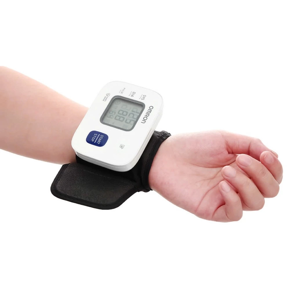 Bước 1: Thả lỏng cơ thể trong khoảng 15 phút, hít thở đều rồi đeo vòng bít vào cổ tay (nên chọn tay trái vì tay trái gần tim hơn sẽ cho kết quả đo chính xác hơn).
