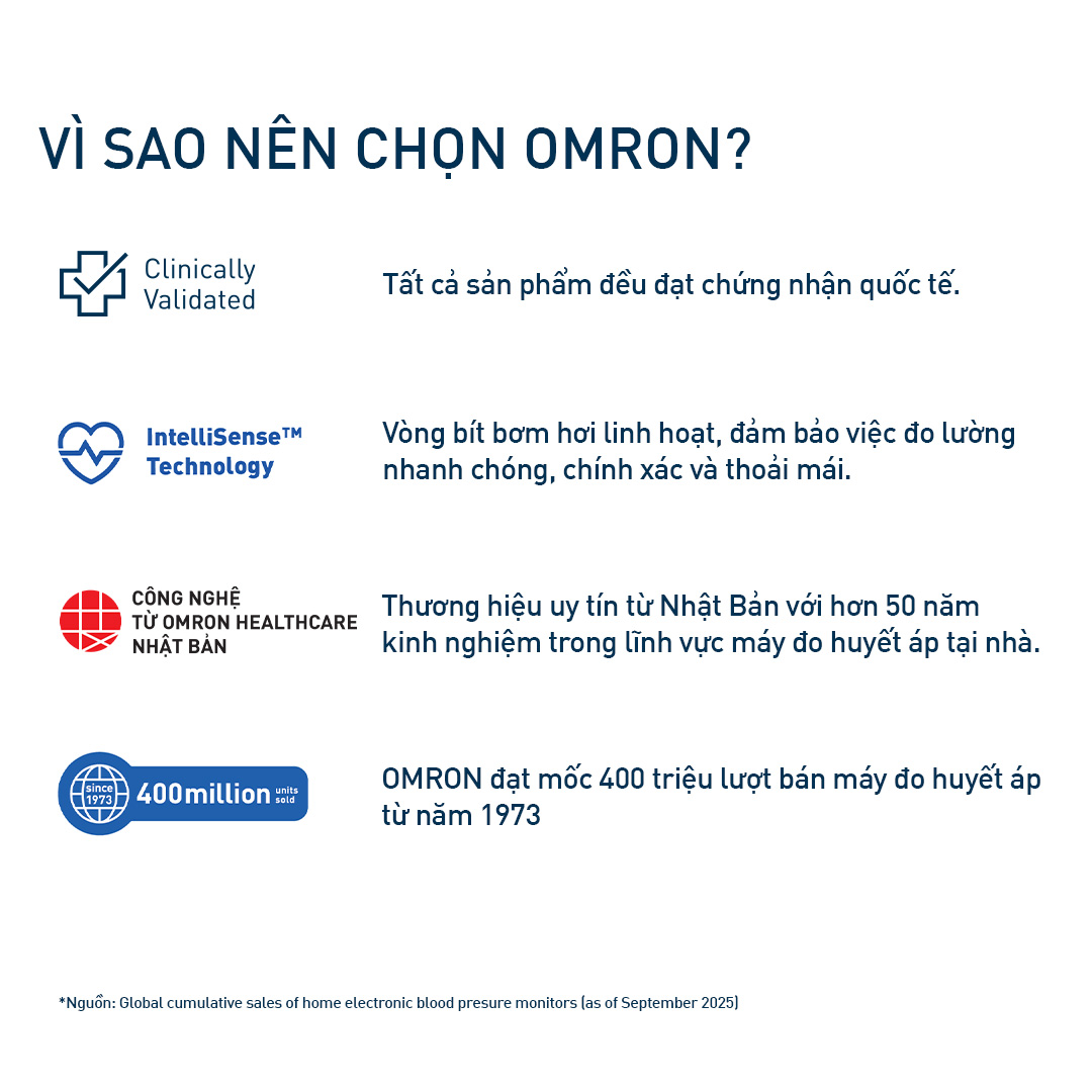 Linh kiện chính được sản xuất tại OMRON HEALTHCARE, Kyoto Nhật Bản, và sản phẩm được lắp ráp tại nhà máy OMRON Việt Nam