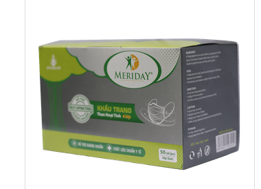 THÔNG TIN SẢN PHẨM: Khẩu trang y tế than hoạt tính 4 lớp Meriday là một trong những sản phẩm của công ty Bông Bạch Tuyết, giúp bạn phòng tránh được khói bụi và ô nhiễm môi trường với những tính năng ưu việt: + 4 lớp vải không dệt bao bọc giúp ngăn cản bụi, lớp vải cuối cùng được ép nhiệt mật độ dày giúp vải không bị bong xơ nên không gây kích ứng, không gây khó chịu cho da. Trong đó, lớp vải vi lọc chất lượng cao ở giữa ,không thấm nước và kích thước lỗ lọc siêu nhỏ cùng than hoạt tính diệt khuẩn giúp ngăn bụi rất hiệu quả. + Thanh nẹp bằng nhựa cứng định hình ôm khít giúp cố định khẩu trang không gây khó chịu cho người dùng. + Dây đeo mềm mại có độ co giãn phù hợp. +Thiết kế khẩu trang ôm sát khuôn mặt giúp hạn chế ánh sáng trực tiếp.