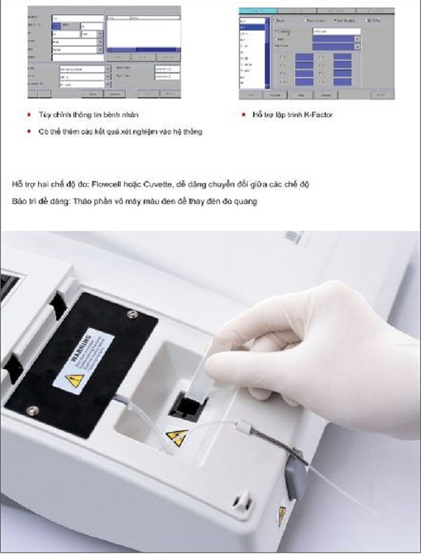 · Các phương pháp đo: Điểm cuối, động học, đánh dấu thời gian và đo hấp thụ. · Dải bước sóng đo: 340-670nm. · Có thể cài đặt lên đến 200 chương trình xét nghiệm khác nhau. · Có thể kết nối với thiết bị ngoại vi như bàn phím, chuột điều khiển qua cổng USB · Chế độ xét nghiệm: Flowcell và Cuvette. · Phần mềm mạnh mẽ thân thiện với người sử dụng. · Màn hình cảm ứng 7.0” TFT, kích thước lớn · Hệ mở có thể sử dụng hóa chất của nhiều hãng khác nhau. |