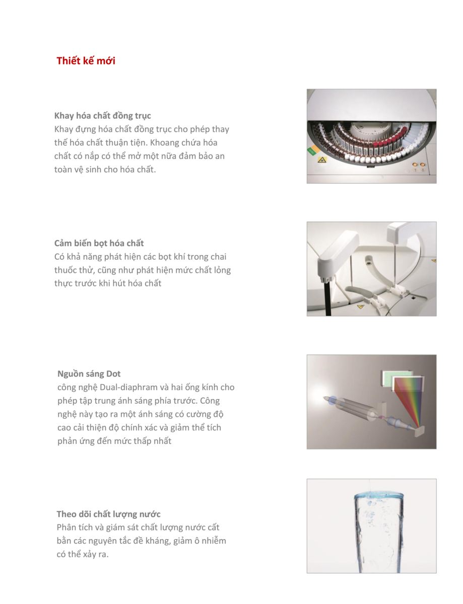 {C}·{C}Khay hóa chất: 120 vị trí đặt hóa chất {C}·{C}Thể tích hóa chất: 15~300 µL, sai số 0.5 µL {C}·{C}Kim hút hóa chất: Cảm biến mực chất lỏng, cảm biến bọt khí và bảo vệ va chạm. |