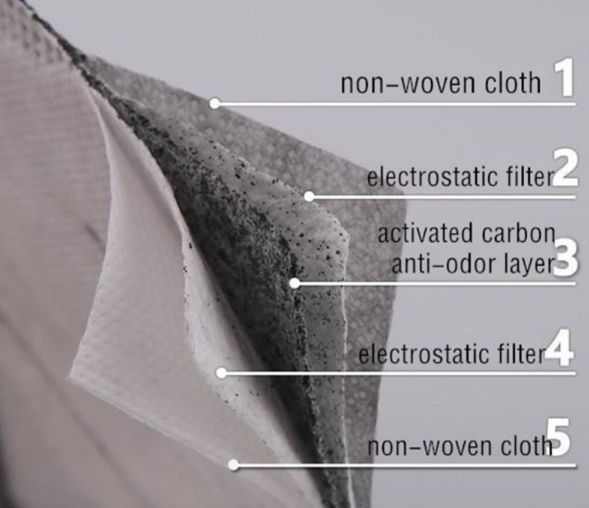 Đặc biệt, khẩu trang 3M 9541 sở hữu thiết kế 5 lớp độc đáo, giúp tăng hiệu quả lọc. Đầu tiên là lớp vải không dệt bên ngoài có chức năng hấp phụ các hạt có hại, bụi và mùi. Các lớp lọc tĩnh điện tiếp theo giúp kiểm soát và lọc các hạt bụi nhỏ hơn 0.3micron. Sau bộ lọc tĩnh điện là lớp lọc than hoạt tính giúp lọc các loại bụi, khử mùi hiệu quả. Cuối cùng là lớp vải không dệt thân thiện với da cho khả năng chống dị ứng khá tốt khi tiếp xúc trực tiếp với da người. Với thiết kế độc đáo này, khẩu trang 9541 giúp bảo vệ tối ưu hệ hô hấp của người dùng trong các môi trường khói, bụi, mùi, ô nhiễm không khí nặng,…