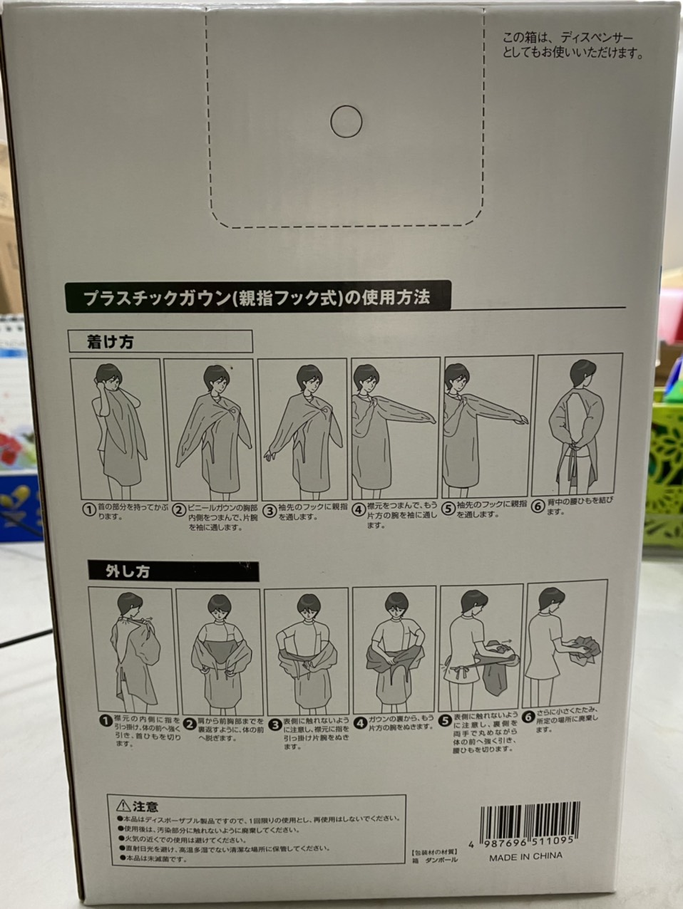 Thông tin cảnh báo: Sử dụng 01 lần, không tái sử dụng. Sau khi sử dụng, vứt bỏ tạp dề vào thùng đựng rác để tránh lây nhiễm bẩn. Phải thực hiện đúng các bước tháo tạp dề theo hướng dẫn để ngăn ngừa nhiễm chéo.